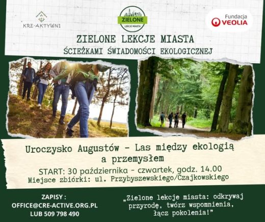 Zapraszamy na kolejny wyjątkowy spacer! Augustów – Las między ekologią a przemysłem 30 października (czwartek) | godz. 14:00 Podczas spaceru porozmawiamy o wpływie działalności człowieka na przyrodę i o tym, jak zachować równowagę między ekologią a rozwojem. Zbiórka: ul. Przybyszewskiego/Czajkowskiego […]